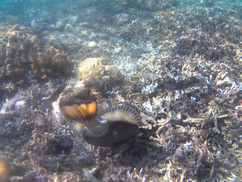 Dopo Banol beach, ci aspetta CYC beach, anch’essa molto bella, ma dal nostro punto di vista leggermente meno attraente rispetto alla prima. Non è possibile arrivare sulla spiaggia direttamente con la nostra imbarcazione, che ci lascia invece leggermente al largo, pertanto dobbiamo coprire a nuoto la breve distanza che ci separa dal bagnasciuga. Anche per questo motivo, non riesco a mostrare molto a livello di foto.