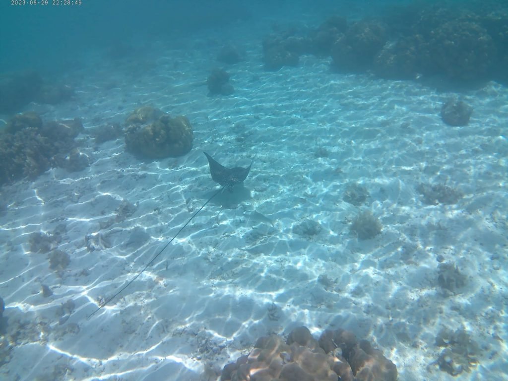 La terza sosta è a Ditaytayan Island, dove consumiamo anche il nostro pasto di metà giornata, comunemente detto pranzo. L’isola presenta una lingua di sabbia che la divide in due parti, con sfumature di colori diverse. Assomiglia un po’ a Kalanggaman Island, che avevamo visitato con un’escursione in giornata durante la nostra permanenza a Malapascua. L’acqua è cristallina e lo snorkeling è meritevole, ci offre infatti l’opportunità di vedere, fra le altre cose, una manta con un pungiglione chilometrico.