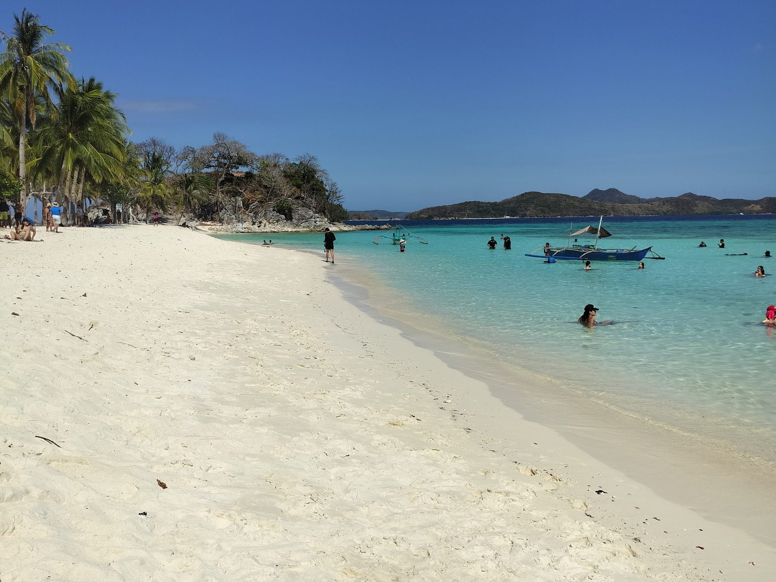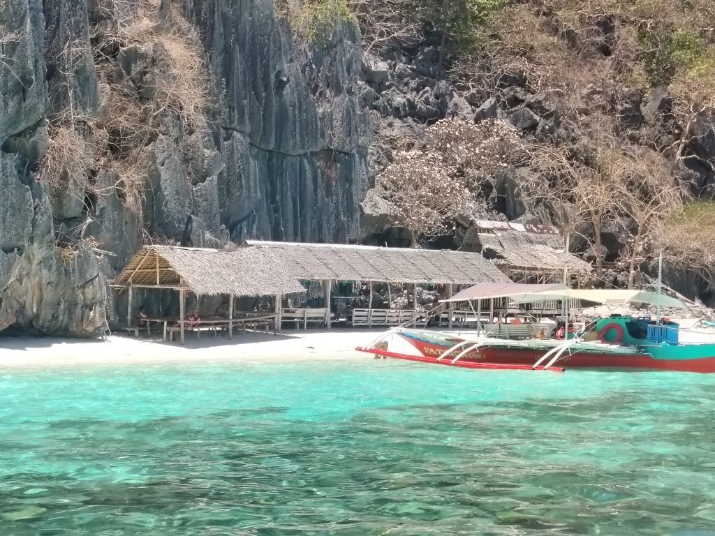 Terminata la visita alla Twin lagoon, è il turno di Banol beach, una spiaggia incantevole che scegliamo anche per la sosta pranzo. Al nostro arrivo ci sono poche barche, ma la spiaggia è piccola, per cui non c’è molto spazio per fare il bagno. Tuttavia la bellezza del posto si riesce ugualmente a cogliere. La spiaggia è probabilmente la più bella che ho visto nelle Filippine, direi anche fra le più belle che abbia mai visto in generale, e fortunatamente ne ho viste un bel po’.