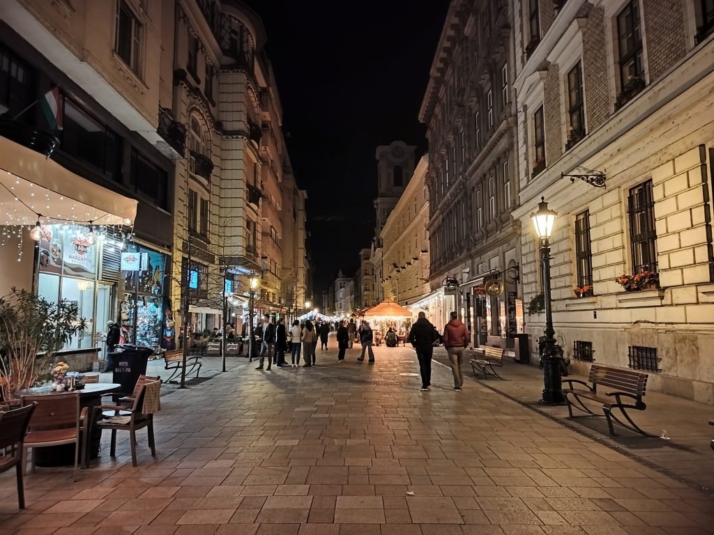 After our well-deserved relaxation, we return to the opposite side of the Danube for a tour of the Market district and Vaci Street, a street renowned for its clubs and stores. This area is also home to the World War I memorial. It is already the evening hours, there are few people around and we take the opportunity to have a bite to eat.