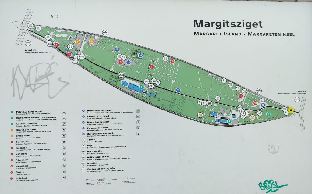 We continue on foot in a northerly direction until we reach Margaret Bridge, the access point for Margaret Island, named after the Saint of the same name who lived in Hungary during the Middle Ages. Along the way, we encounter the Statue of Imre Nagy, Hungary’s first Minister and and Hero of the Revolution who led the protest against the Communist regime, before being executed. There is also a beautiful view of the Danube from the Bridge.