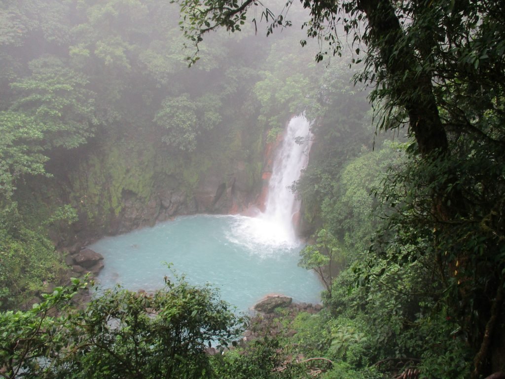We depart unhurriedly after a good breakfast and reach Tenorio Volcano National Park after an hour and a half drive. The main attraction of the park is the Rio Celeste Falls, so called because of the bluish color the river takes on, thanks to the reflection of light on the metals deposited on the bottom. The path to get there is not unmissable, in our case partly because the rain makes the path a slush. However, the falls are really beautiful, and the deep blue color can be glimpsed despite the fact that it is not a sunny day.