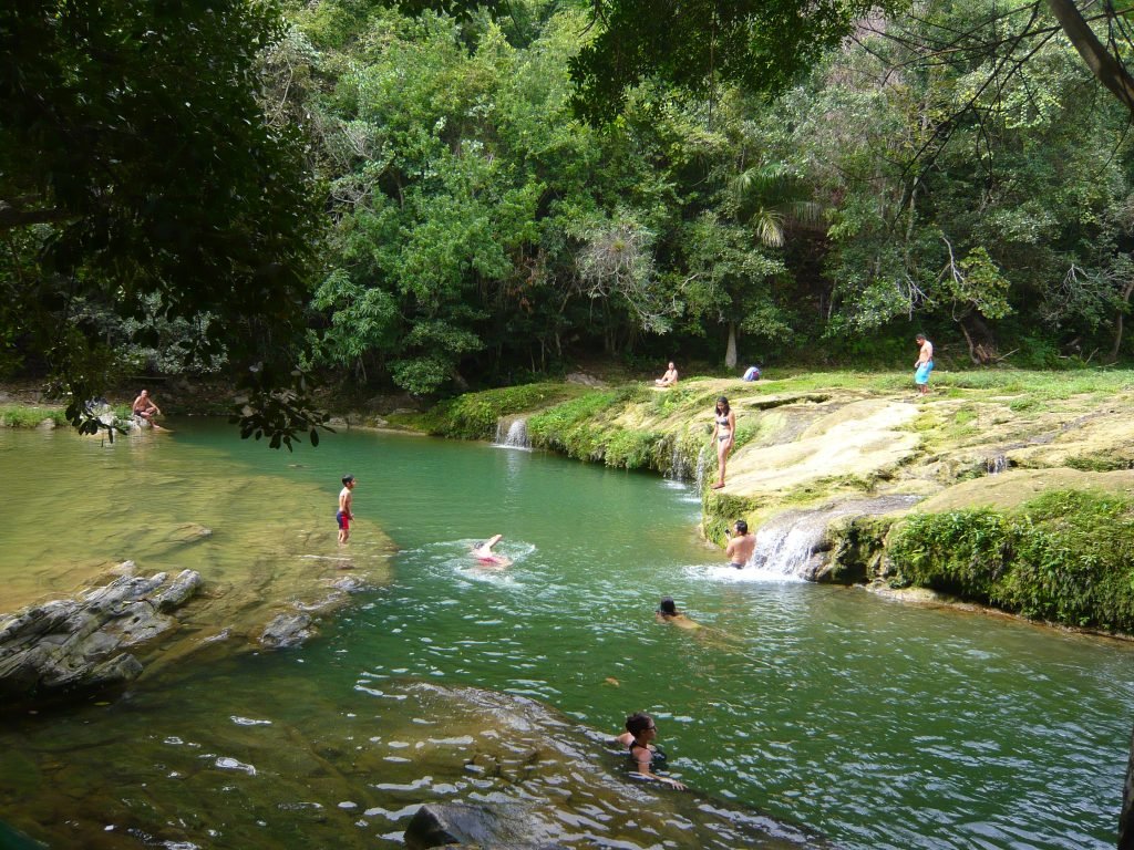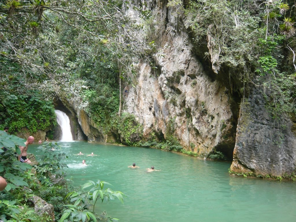 We start the day with an excellent breakfast served by our host, consisting of omelet and mango juice, and head to Topes de Collantes, a natural park to which we devote a good part of the day. The visit to the park consists of a medium-difficulty trek, following a path to a small waterfall amidst dense vegetation and rather noteworthy rock formations. The pond below the waterfall is swimmable, in fact we take advantage of it to cool off.