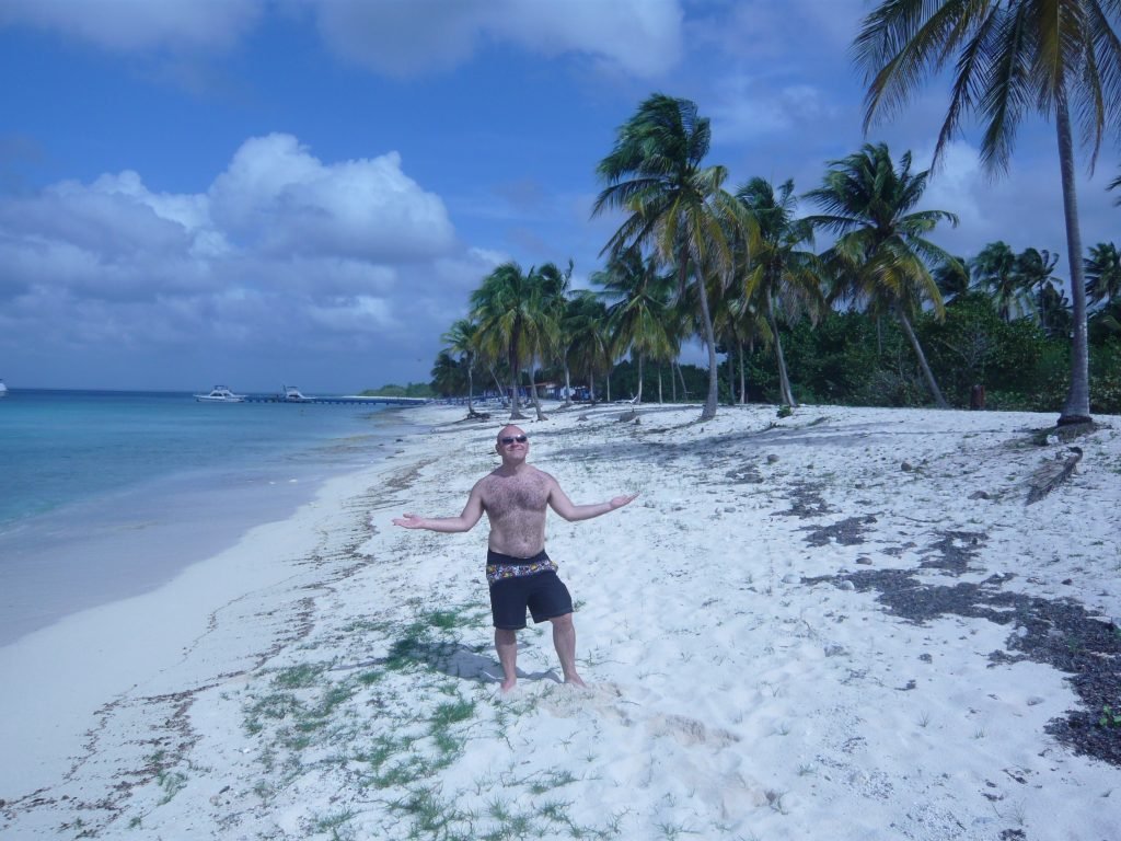 At that point all we have to do is head to Playa Pilar, which we walk to from the parking lot by crossing a short path. Fortunately, I don’t have my passport on my back, because the first thing that comes to my mind upon seeing that beach is to immediately set it on fire (below is a photo as I ponder this option, among others). The water is among the most crystal clear conceived by the Almighty, and the sand dunes can be seen out to sea from considerable distances. Plus the sand has the consistency of flour; I will find something similar only at Whitehaven beach several years later.