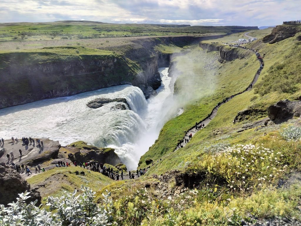 After visiting the geysers, we head to Gullfoss, one of Iceland’s most majestic waterfalls, which of all is the one I enjoyed the most. The waterfall has two drops, the highest of which is about 20 meters. We reach the parking lot in a few minutes by car, and from there the waterfall with a short walk, allowing us to admire all its nuances from different vantage points. For the visit, you can consider about an hour or so.