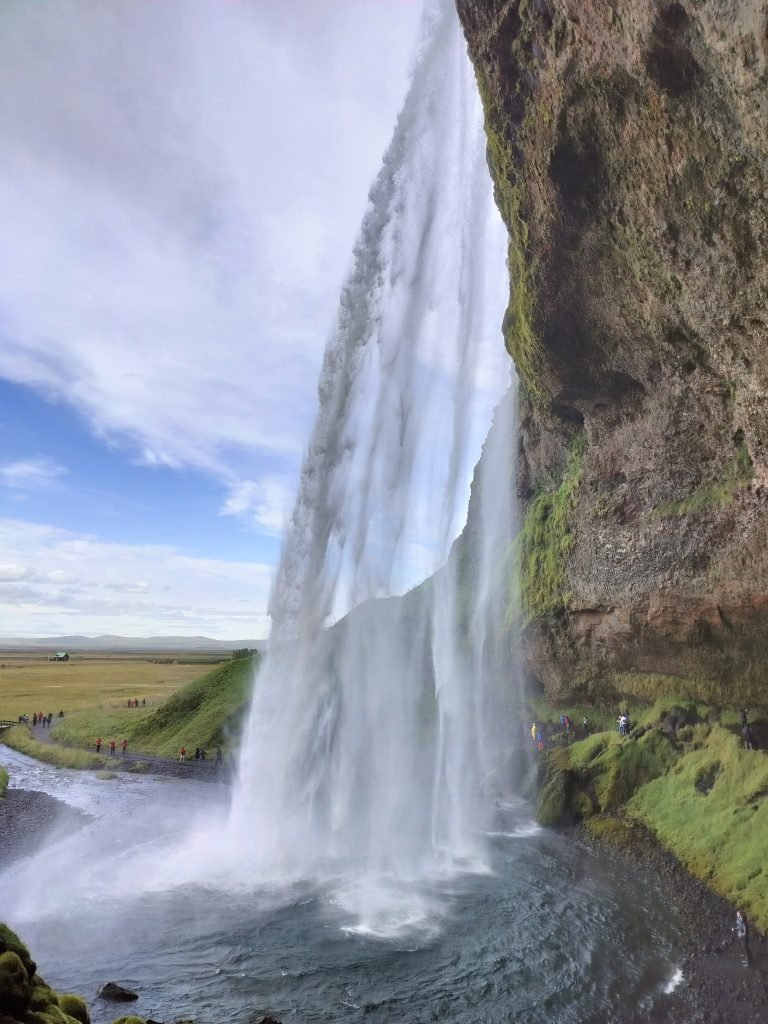 After the tour of the crater, we reach Seljalandsfoss, one of Iceland’s best-known and most photographed waterfalls, in about an hour and a quarter. Indeed, there are many people when we arrive. The main peculiarity of the waterfall lies in the possibility of seeing it from behind, circumnavigating its ring, otherwise it did not seem to me more fascinating than many others visited during the trip, although it is still very nice. The waterfall is easily accessible from the parking lot, for which you pay the usual ISK 1,000 (about €6.50).