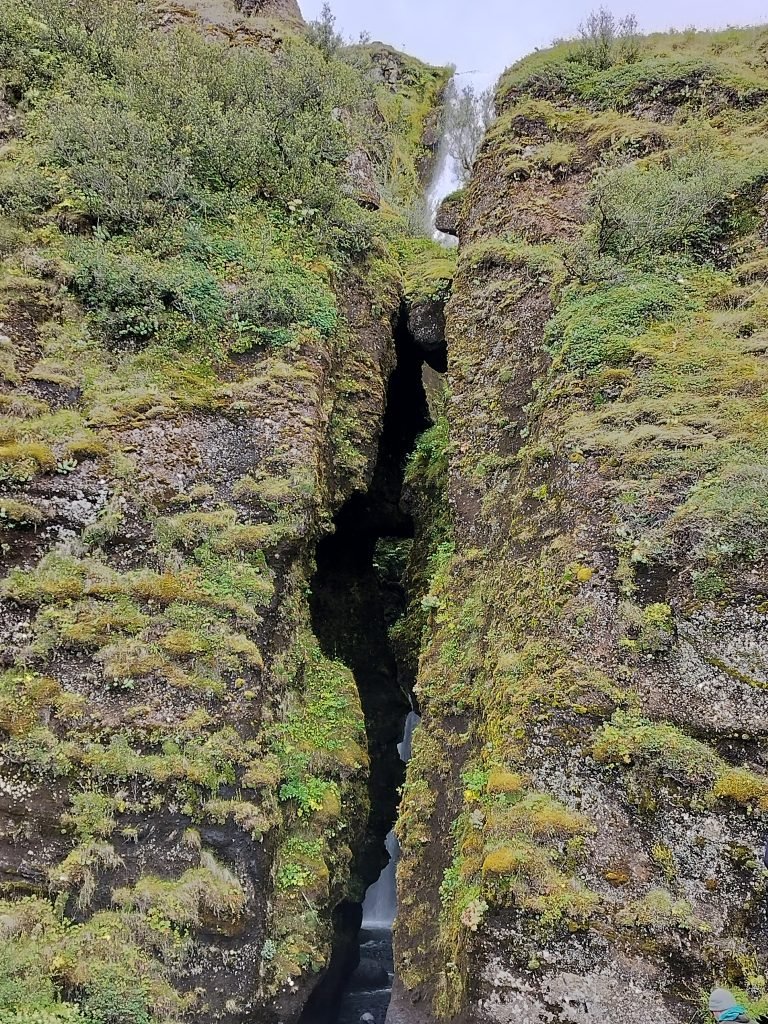 Continuing on foot along the short path adjacent to the waterfall, you reach Gljufrabui, a hidden waterfall, to see which you have to stand in line, which can be quite long. Visiting both waterfalls is doable in an hour or so.