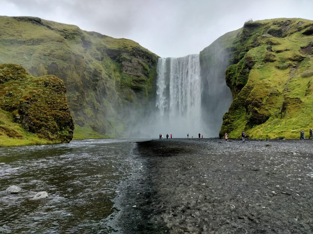 We next head to Skogafoss, another famous impressive waterfall with a rather significant drop, a half-hour drive from Seljalandsfoss. This waterfall is also easily accessible from the free parking lot, plus there is a short but steep trail that allows you to see it from above. However, I don’t recommend doing the trail too much because the view of the waterfall is not very wide and is less appreciated than from the foot.