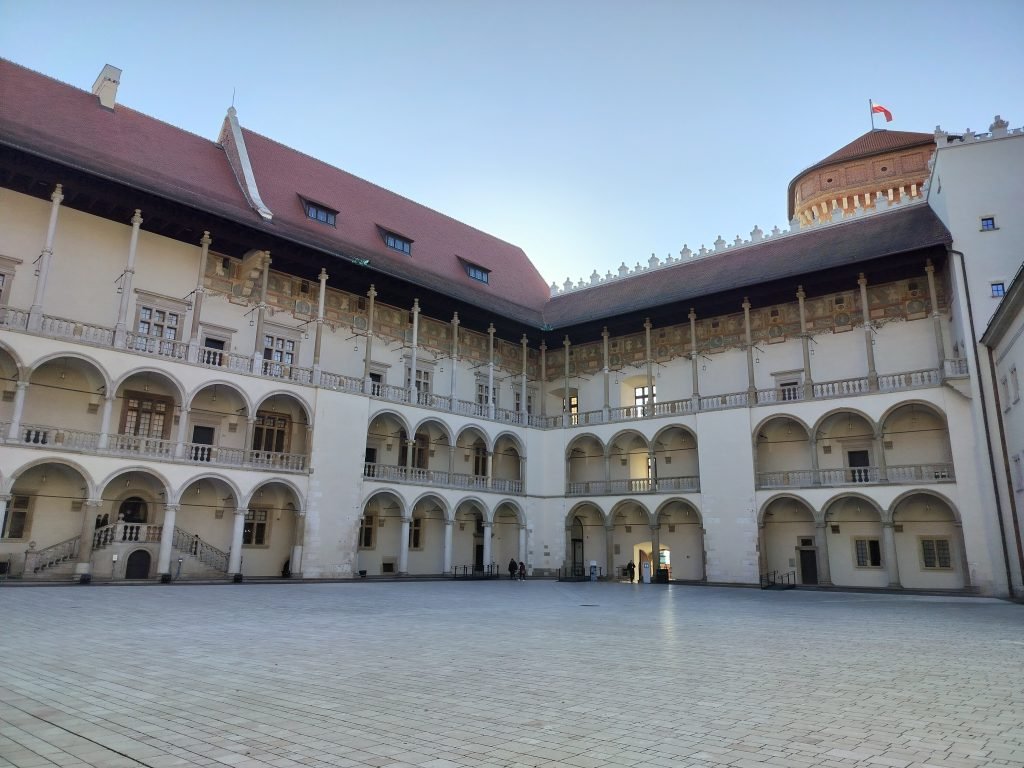 We start the tour of the Castle District and the Cathedral from the outside environment, partly because it is too early to visit the halls, which open at 9 a.m. (the outside part is accessible from 6 a.m. instead). There are very few people, but already half an hour later it becomes very crowded. The castle reached its present form in the 16th century through the actions of King Sigismund I the Elder.
