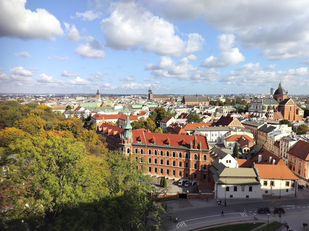 I had the opportunity to visit Kraków on a weekend in October with absolutely pleasant weather conditions. In addition to the main parts of the city, the itinerary described below includes a visit to the Wieliczka Salt Mines and the Kościuszko Mound, located somewhat outside the city walls. For various reasons, we were unable, unfortunately, to include a visit to Auschwitz and Birkenau, but I plan to return to Poland soon to fill that important gap as well.