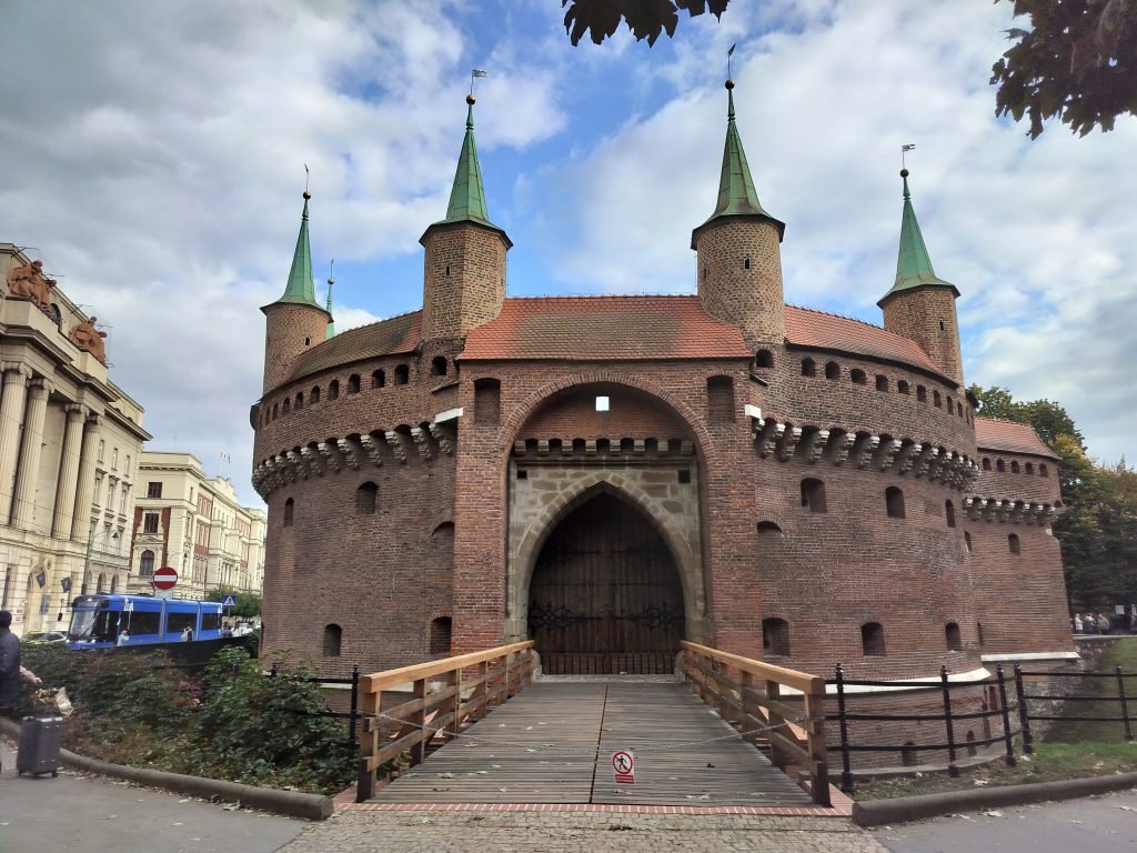 - The Barbican, a building formerly connected to St. Florian’s Gate, with watchtowers, in Gothic style and still well preserved