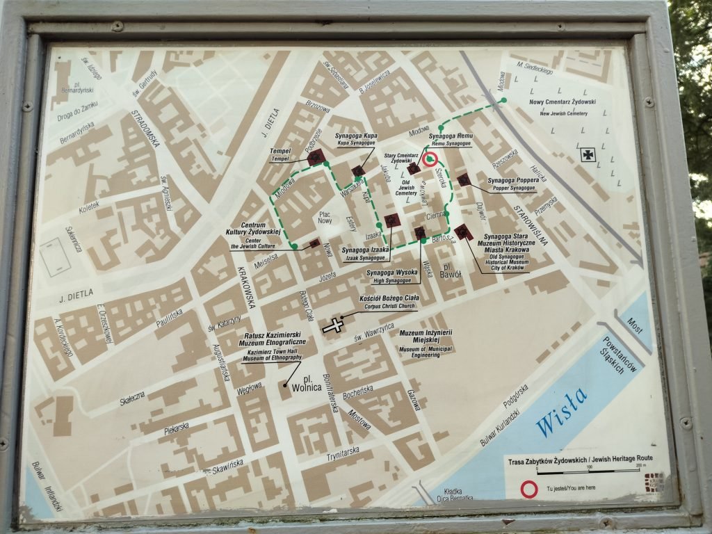 Upon reaching our destination, we discover that we are in the right place but at the wrong time, in fact it is the day of an important Jewish holiday (don’t ask me which one because I don’t remember) and all the synagogues are closed to the public. A pity, because the neighborhood is quite rich, as we can also see from the map we get hold of.