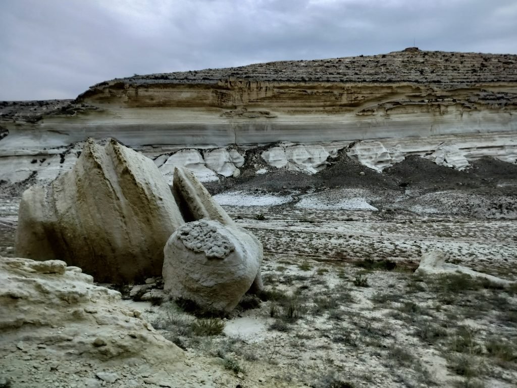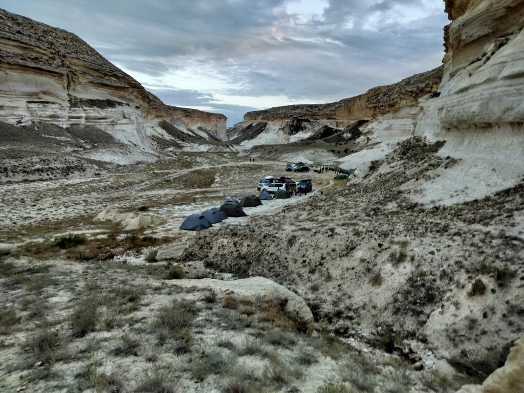 The last stop of the day is Kapamsay Canyon, where we set up camp. The canyon dates back to the Jurassic-Cretaceous period (meaning it is over 60 million years old), stretches for about 4 km and reaches a depth of 70 meters. The rocks are mainly composed of gypsum, which is why they are so white.
