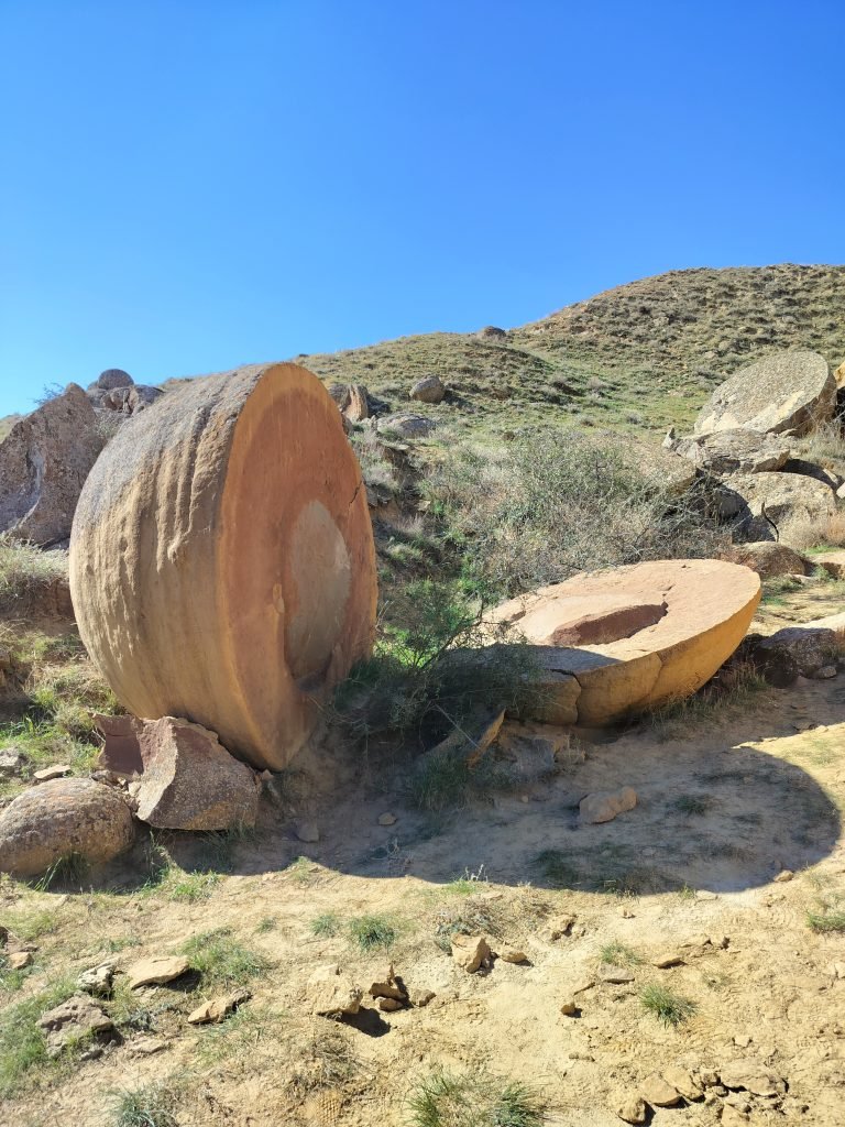 We wake up in Kapamsay Canyon after a rather cold night and set off again around 10 a.m., having seen it in all its beauty in the light of dawn. The first attraction of the day is Torysh, the so-called Valley of the Spheres. From the pictures I had seen before leaving, this place did not seem particularly fascinating to me, but I am happy to have changed my mind after seeing with my own eyes this immense expanse dotted with countless spherical boulders, some reaching 4-5 meters in diameter. The formation of these boulders is due to unique phenomena, which essentially consist of dynamic accumulations of debris on fossil cores subject to vortex motions caused by the drag forces of the Tethys Ocean. The Valley of the Spheres is believed to date back between 60 and 100 million years and is thought to be the area with the highest concentration of stone spheres in the world.