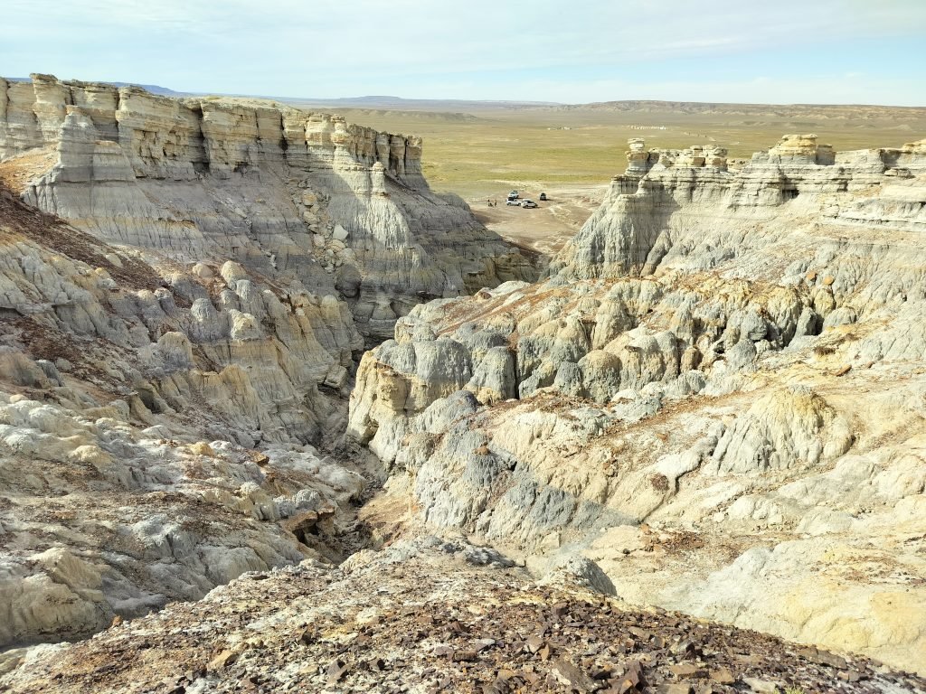 Next, we set off again for Kokala Canyon. The Kazakh word “Kokala” means “blue fortress,” an expression that gives an idea of the predominant color of the rocks. The canyon dates back over 150 million years and its morphology is the result of volcanic phenomena and erosion by water and wind. The shape of the rocks vaguely resembles those of Bryce Canyon in the United States. The canyon does not cover a very large area, but it is truly a delight to behold. Visiting the site is not particularly challenging, but you need to be careful of the soft ground, which consists of layers of clay and limestone.