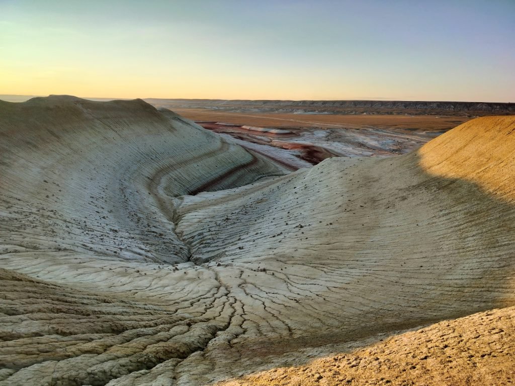 We arrive near Kyzylkup around sunset, the ideal time to best observe the colors of the rocks. The area is quite large, so we dedicate not only sunset to our visit, but also a good part of the following morning, including sunrise. The hills that make up the canyon are not very high, so it is relatively easy to reach the top of the canyon with minimal effort and then descend and climb back up several times. The beauty of the place is truly breathtaking, among the most incredible I have ever seen. I’ll let a few snapshots speak for themselves.