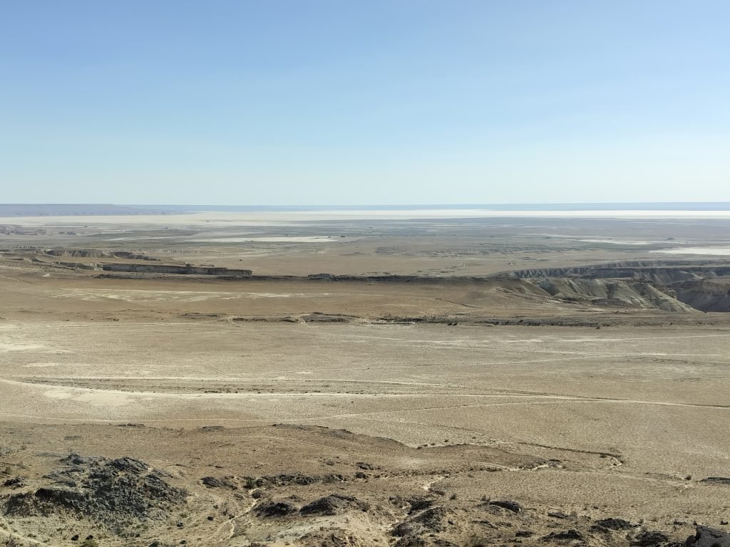 After our last lunch in the village, we make a brief stop at the viewpoint that allows us to observe the Karakia Depression, the lowest point in Kazakhstan and the fifth lowest in the world, at 132 meters below sea level (slightly deeper than Dallol). The name of the depression literally means “steep black slope,” a definition that accurately describes the landscape. The depression can only be seen from the viewpoint; the rest of the area is inaccessible. However, in my opinion, the view is not particularly breathtaking.
