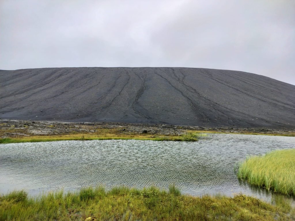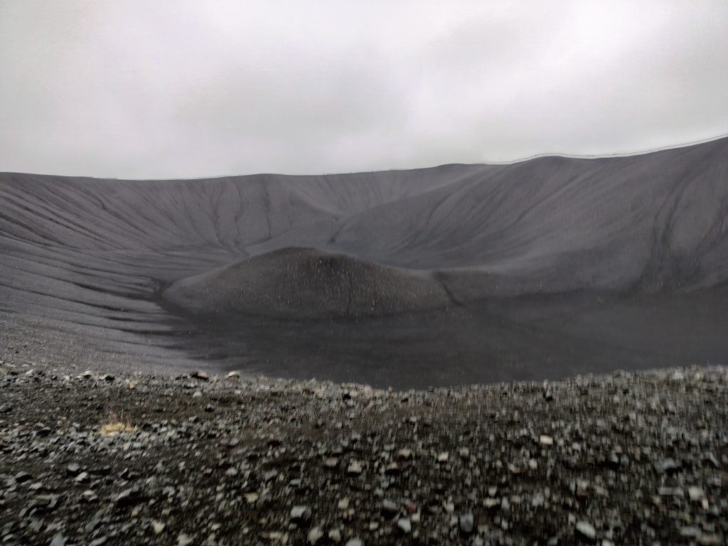 Leaving the area, we head straight for Hverfjall, arriving in a few minutes after traveling a short stretch of rather rough road. There is a small parking lot, which costs, as usual, ISK 1,000, also including the Krafla area. The climb to the volcano is quite short, but the last stretch is also very tiring, especially in case of rain and wind. The crater is dry and very black in color. The view of the surroundings is, of course, truly spectacular. I try to walk around the crater, but the wind is so strong that it knocks me off balance several times despite my stoic resistance. In the end, it wins, so I have to give up and desist. In less unfavorable weather conditions, the complete tour takes about twenty minutes.