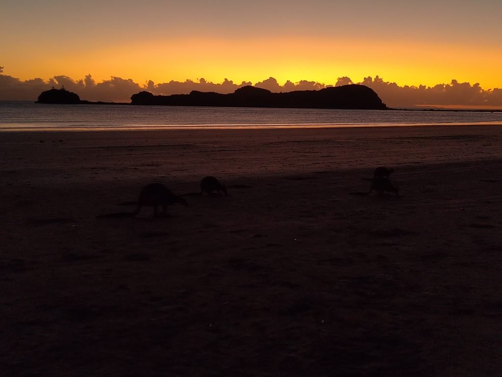 Upon returning from the second day’s excursion, we picked up our rental car to drive to Cape Hillsborough, located just over an hour’s drive south of Airlie Beach, where you can see kangaroos on the beach in the national park. We see kangaroos already outside our accommodation, a small house in the middle of nowhere, where there are no restaurants, markets, or other forms of life.