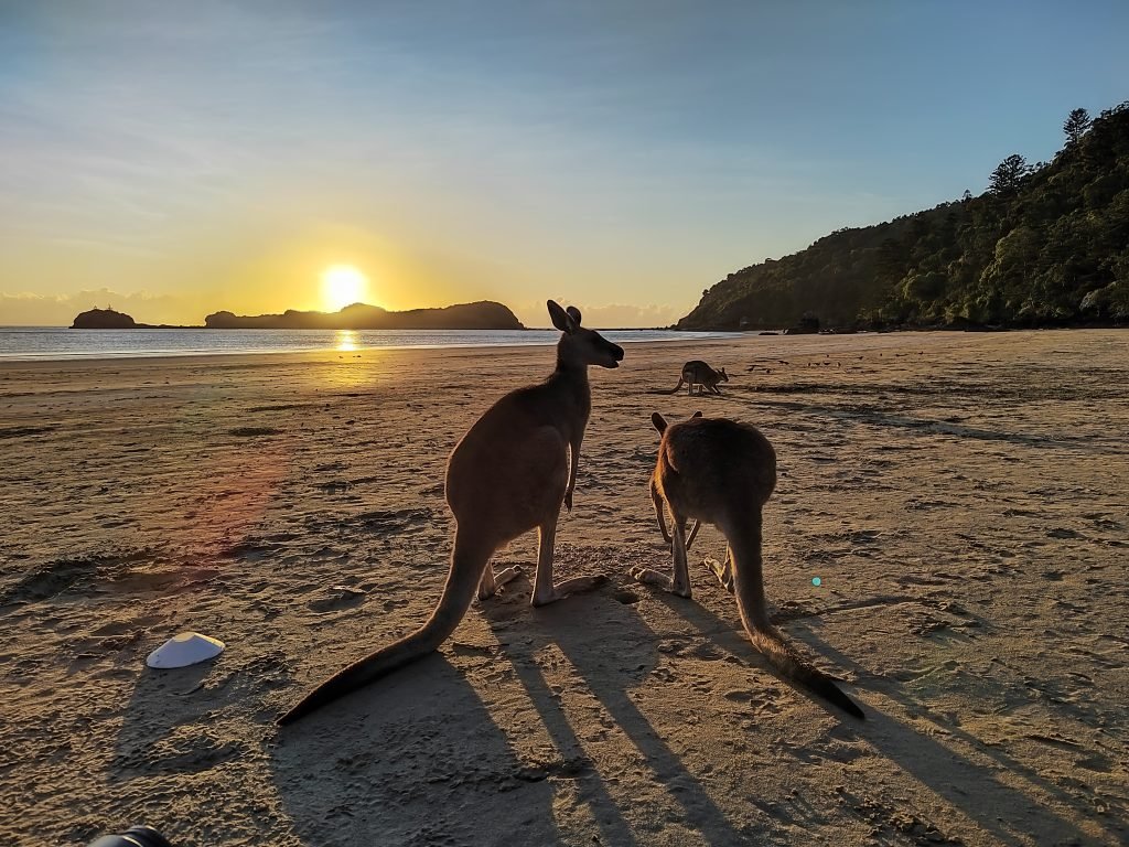 To see the kangaroos on the beach, you have to arrive at dawn, which we don’t mind at all, especially because the view of the first light of day from that beach is truly spectacular. When we arrive, we are the only ones there, but people start arriving shortly after, as do the kangaroos.