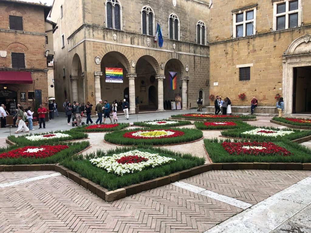 - Palazzo Piccolomini, originally the summer residence of Pope Pius II (born Silvio Enea Piccolomini), a native of the area, which in turn houses the first hanging garden of the Renaissance.