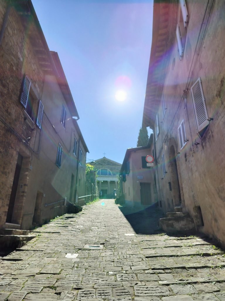 Walking randomly around Piazza Pio II, you can explore the various streets that make up the village. Among these, Via del Bacio and Via dell’Amore are definitely worth mentioning, as well as those that offer views of the valley.