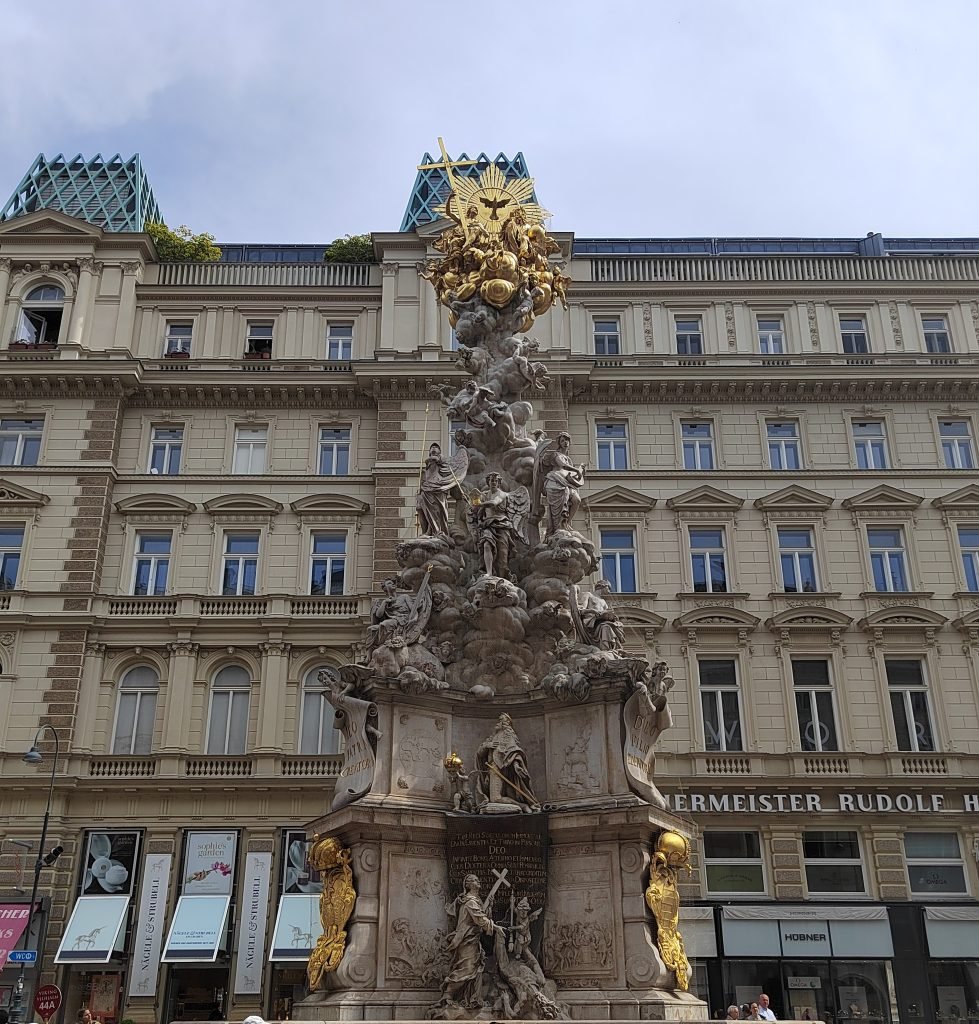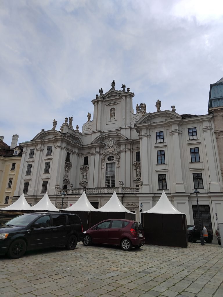 We continue a few more meters to Am Hof, the largest square in the old town. The main attraction of the square is its namesake church, which features a Baroque-style facade. It was from the balcony of this church that Napoleon proclaimed the end of the Holy Roman Empire. Also of note within the square is the presence of the Marian Column, a column built to ask the Virgin Mary for protection against the Swedish army during the 30 Years War.