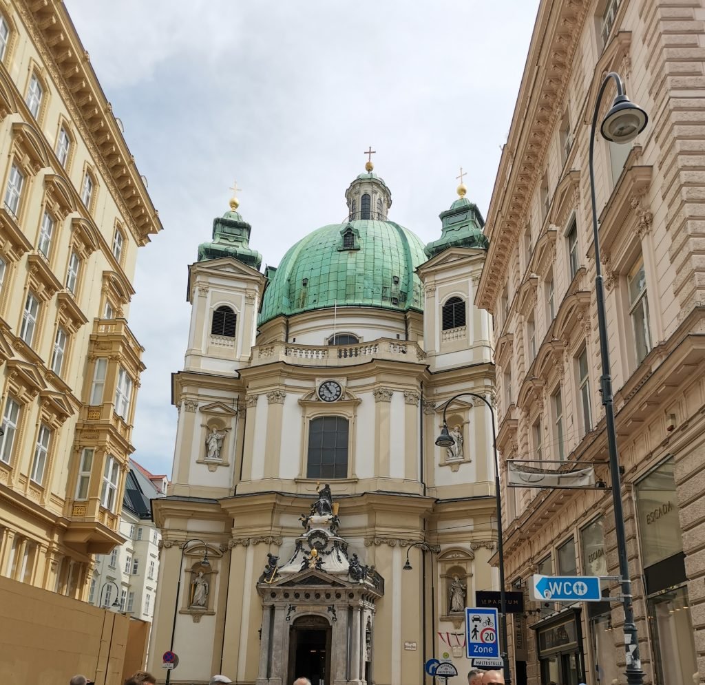 From St. Stephen’s Cathedral, walk along Graben, one of the city’s best-known streets and Vienna’s first fully pedestrian street, to St. Peter’s Church (Peterskirche), passing the Plague Column, a monument commemorating those who died during the plague of 1679. A special feature of St. Peter’s Church is its oval, rather than round, dome.