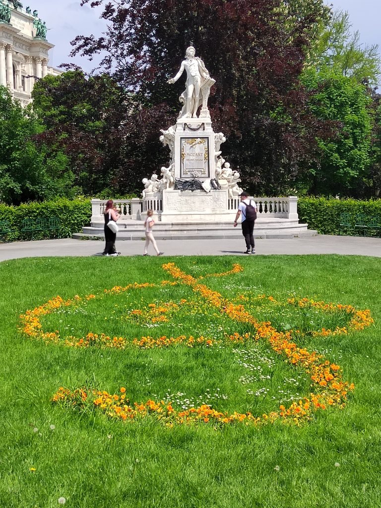 At this point we can relax in the Burggarten, the garden of the Hofburg released in the 1800s. Probably the best-known part of the park, located near the Albertina Museum, is the statue of Mozart, set before a lawn that features a composition of flowers arranged in the center to form a treble clef.