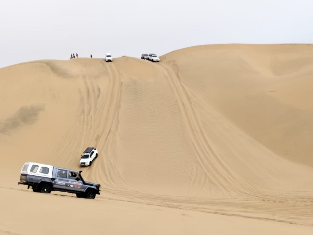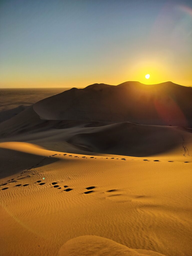 Siamo arrivati a metà del nostro viaggio in Namibia e, avendo appena visitato le meraviglie di Sossusvlei, vogliamo mantenere alto il livello scenografico. Il modo migliore per ottenere questo risultato è ritornare ad affacciarci sull’Oceano Atlantico, stavolta per spalancare gli occhi dove esso incontra il deserto. E visto che abbiamo preso dimestichezza con le dune, non ci sono motivi validi per non provare a scalare la più alta del mondo!