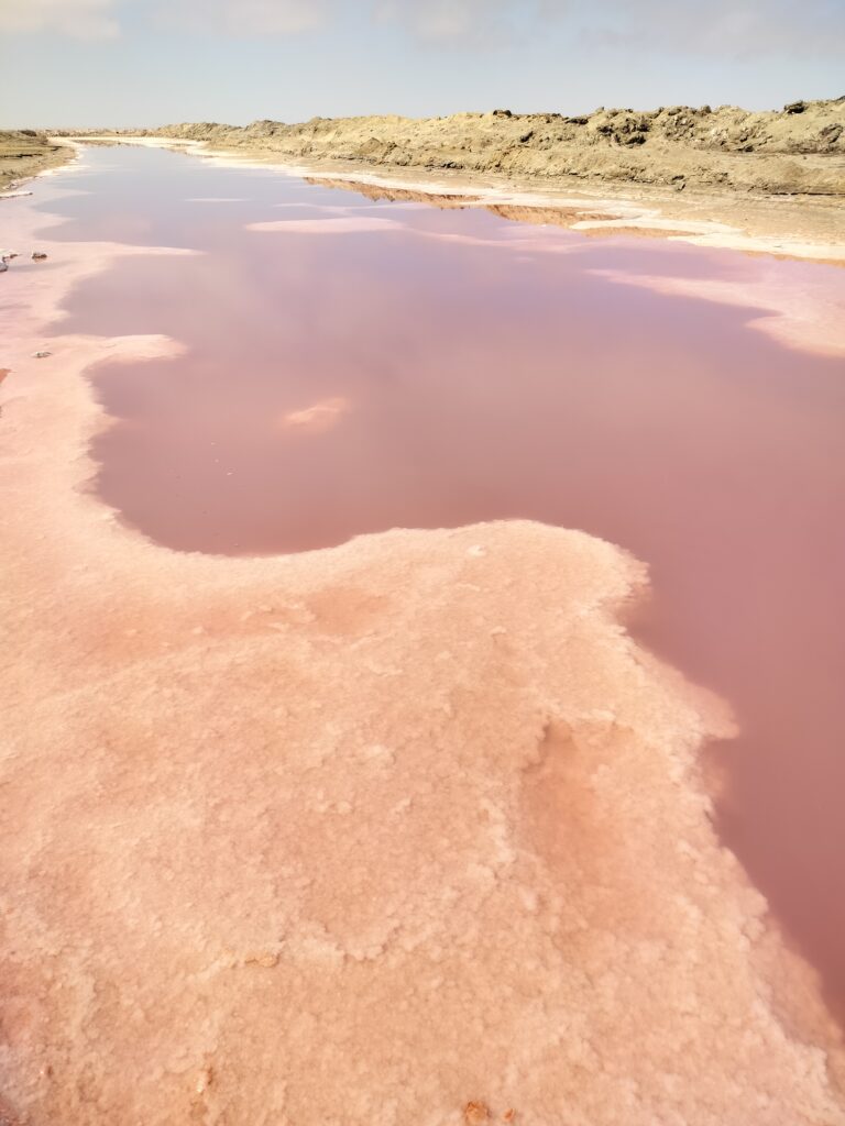 La seconda sosta, anch’essa piuttosto breve, avviene al Pink Lake, situato subito prima della spiaggia di Walvis Bay. Si tratta di un lago salato che assume una colorazione rosa intensa causata dalla presenza delle gemme di sale. L’estrazione del sale è, non a caso, fra le attività di punta di questa zona della Namibia. Lo scenario a cui assistiamo è estremamente suggestivo, ricorda molto alcune pozze di acqua salata dell’Oasi di Siwa in Egitto.